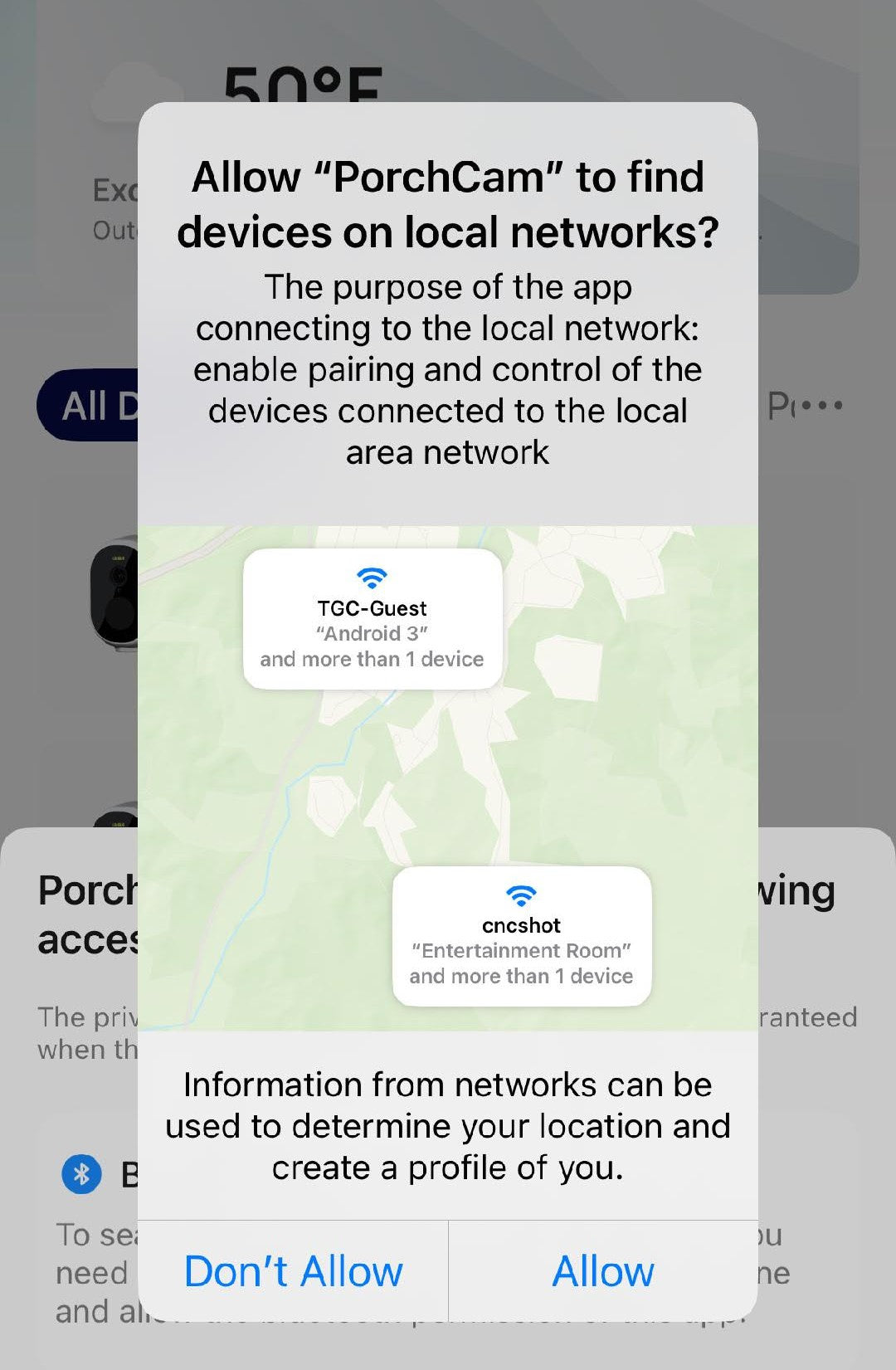 In the app, tap “Add Device” and follow the prompts to connect your PorchCam to your account. Make sure your camera is powered on and nearby during setup.